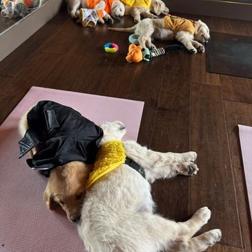 Puppies get over 30 minutes of rest between the classes. They also sleep whenever they want during a class (especially during yoga time).